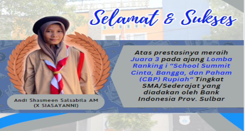 Hasilnya salah satu peserta dari tim SMAN 1 Majene berhasil meraih juara 3 atas nama Andi Shasmeen Salsabila (X Siasayanni). Selain itu dua peserta SMAN 1 Majene juga memperoleh suvenir karena mampu menjawab pertanyaan dari panitia.