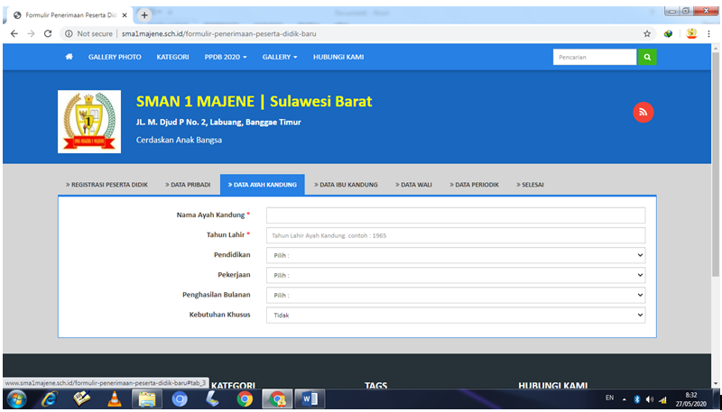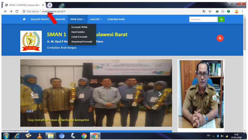 1. Ketik pada browser alamat: sma1majene.sch.id (tanda panah merah)