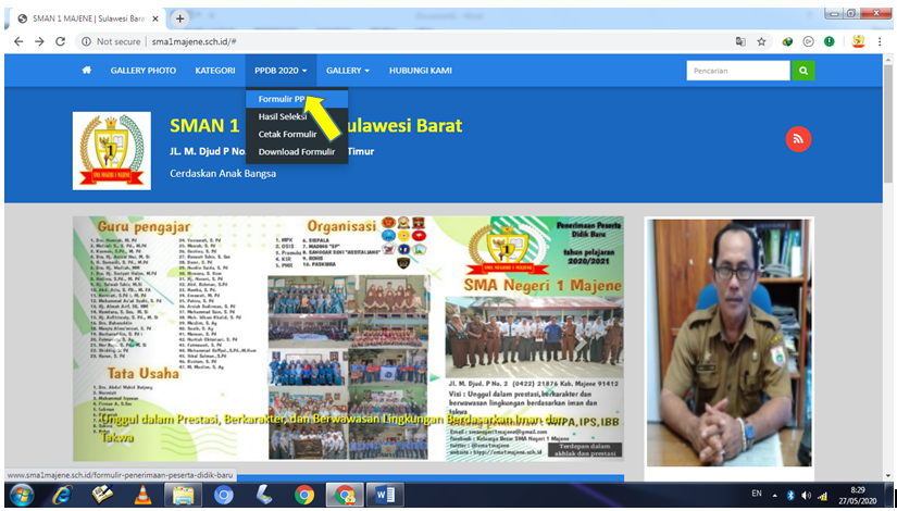 2. Kemudian klik Formulir PPDB (tanda panah kuning)