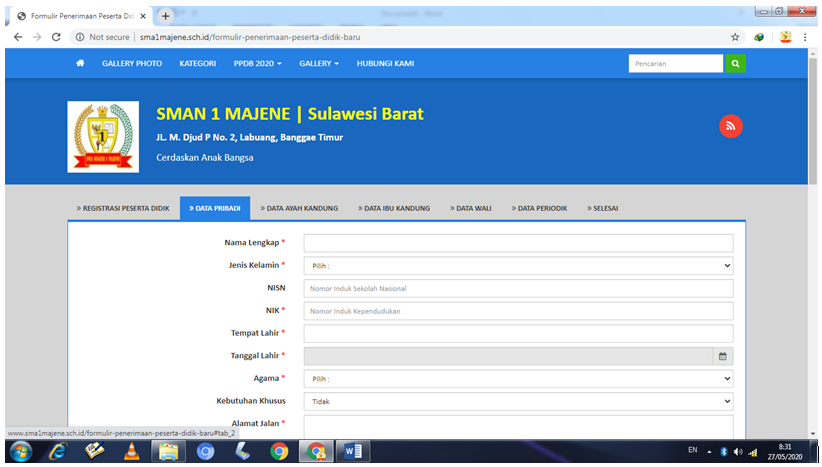 4. Isilah data-data yang diperlukan pada DATA PRIBADI