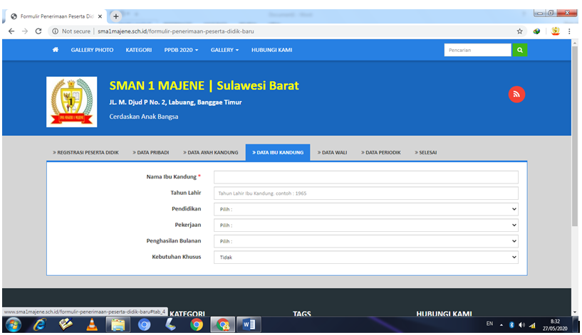5. Isilah data-data yang diperlukan pada DATA IBU KANDUNG