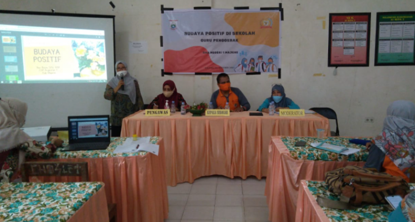 Agenda terakhir adalah sosialisasi program CGP oleh tim CGP SMAN 1 Majene, yaitu ibu Herlina, S.Pd.,M.Pd., ibu Nur Baya, S.Pd.,M.M., dan ibu Fatmawati, S.Pd. Dalam sosialisasi kali ini membahas mengenai penerapan budaya positif di sekolah. Poin penting dan menarik pada sosialisasi ini adalah bagaimana guru dapat membangun budaya positif di sekolah yang berpihak pada peserta didik. Budaya positif dapat dimulai dari mengubah paradigma stimulus respon menjadi teori kontrol. Lalu kebiasaan selama ini yang menerapkan berbagai aturan kepada peserta didik bahkan disertai hukuman diganti dengan penerapan keyakinan kelas. Keyakinan kelas dapat menjadi pondasi dan arah tujuan dari kelas atau sekolah secara umum, serta menjadi landasan dalam pemecahan masalah yang terjadi di kelas atau sekolah. Guru berperan sebagai manajer yang berkolaborasi bersama peserta didik untuk memperbaiki kesalahan yang dan hingga dapat mengatur diri mereka sendiri.