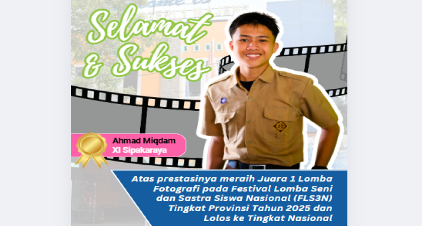 Satu siswa UPTD SMAN 1 Majene atas nama Ahmad Miqdam (XI Sipakaraya) berhasil lolos sebagai finalis Tingkat Nasional Lomba Fotografi Festival Lomba Seni dan Sastra Siswa Nasional (FLS3N) Tahun 2025. Berikut hasil yang diraih oleh UPTD SMAN 1 Majene pada FLS3N Tingkat Povinsi: