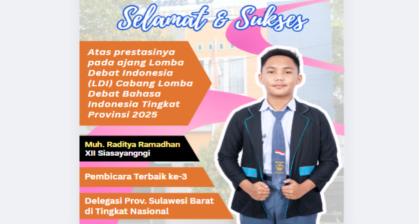 Dinas Pendidikan dan Kebudayaan Prov. Sulawesi Barat menyelenggarakan seleksi tingkat provinsi Lomba Debat Indonesia (LDI) Cabang Lomba Debat Bahasa Indonesia Tahun 2025 pada tanggal 25 Agustus 2025. Sebanyak 51 peserta dari 17 tim SMA se-Sulawesi Barat bersaing untuk menjadi Pembicara Terbaik. Seleksi dilaksanakan secara daring dan diikuti oleh tim di sekolah masing-masing.
