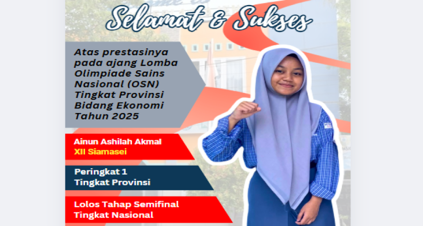 Satu siswa SMAN 1 Majene atas nama Ainun Ashilah Akmal lolos ke tahap Semifinal OSN Bidang Ekonomi yang akan dilaksanakan pada tanggal 11 September 2025 secara daring.